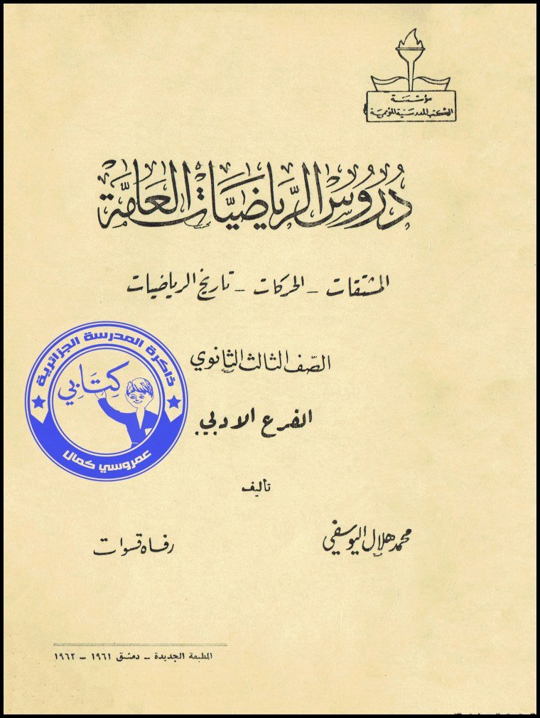 دروس الرياضيات العامة - الصف 3 ثانوي أدبي الرياضيات والحساب المطبعة الجديدة - دمشق